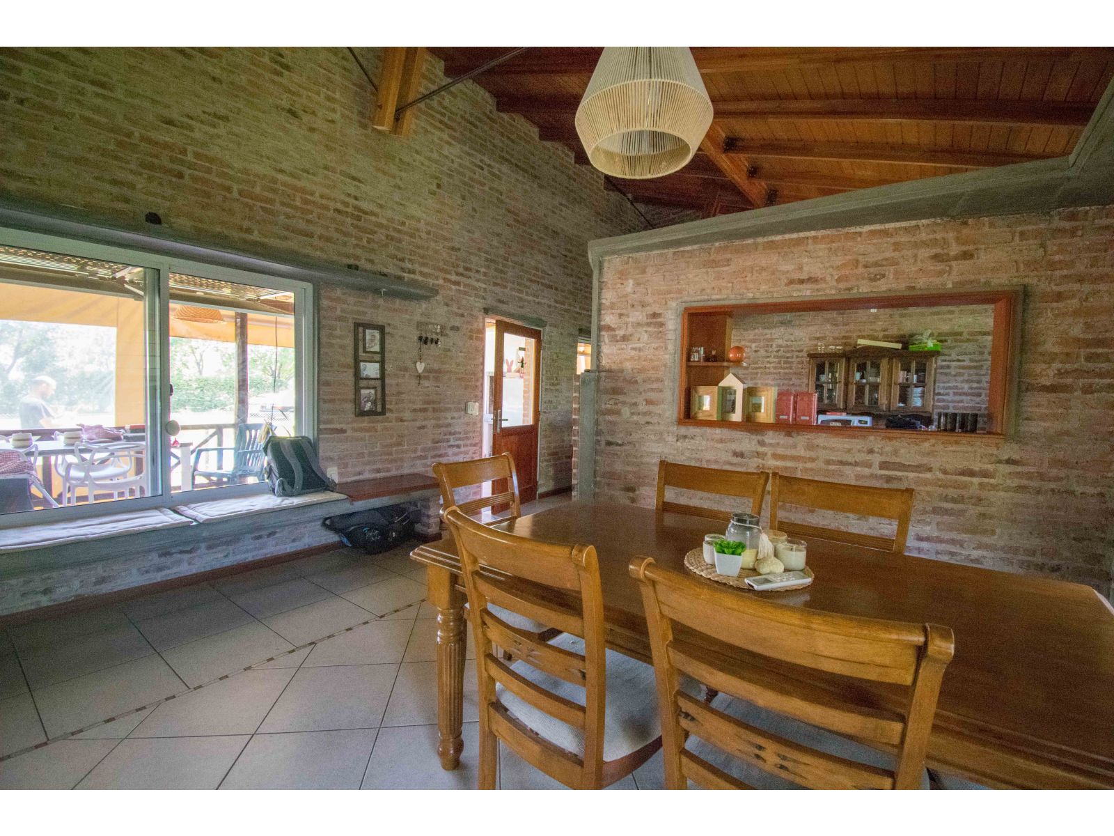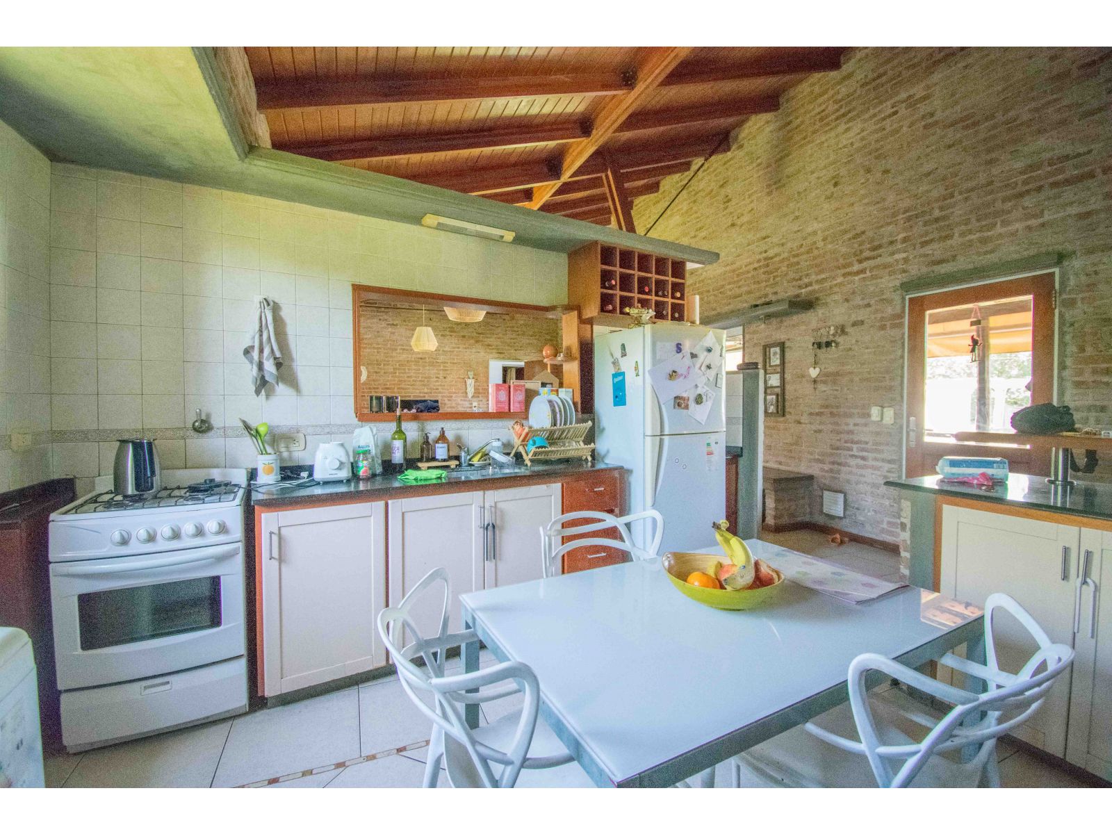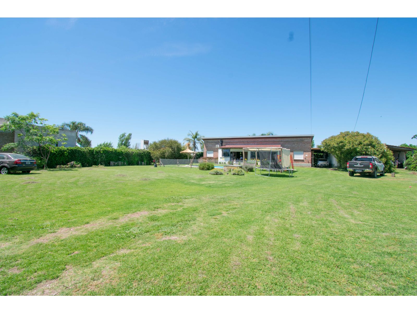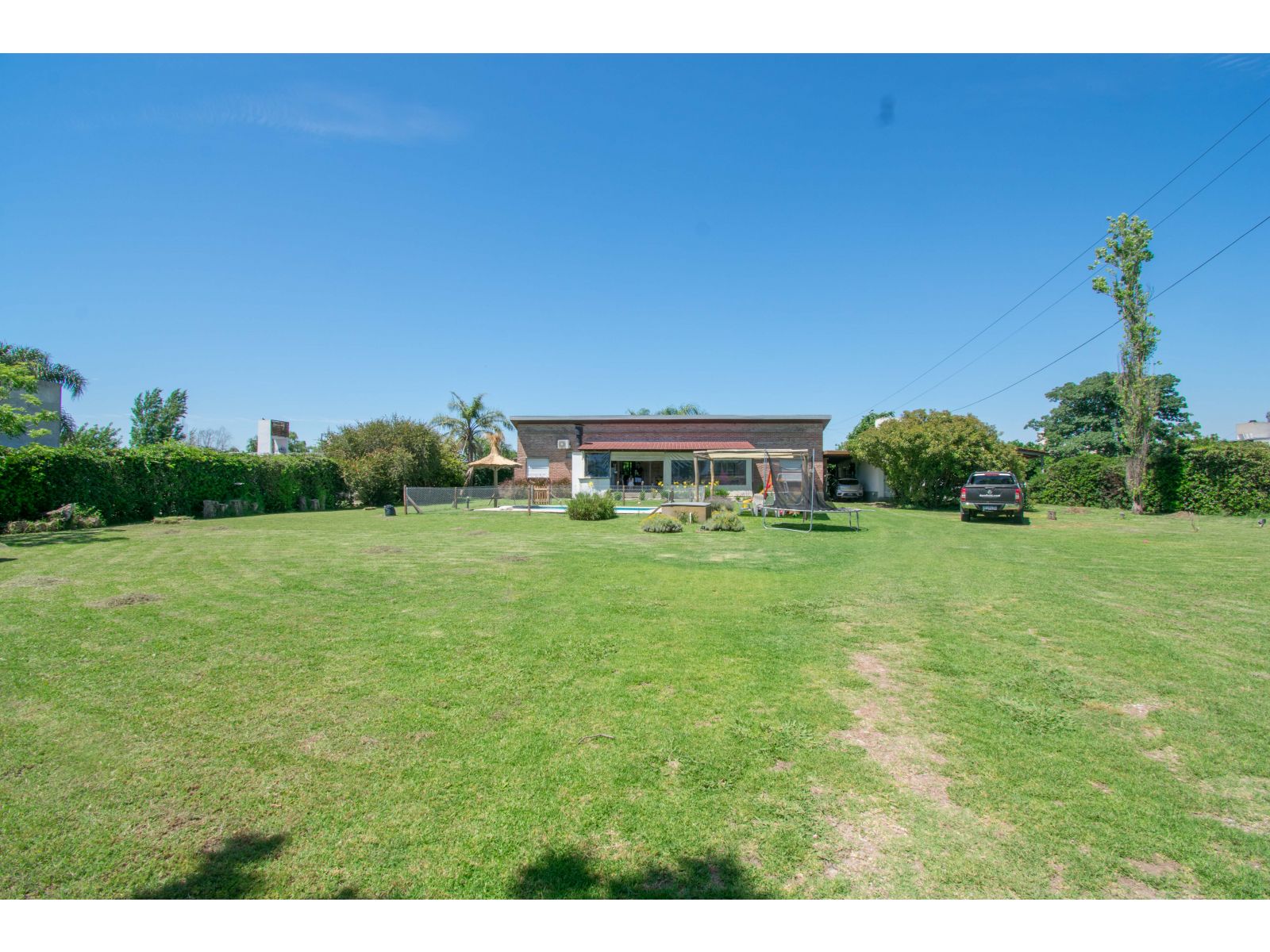 Casa estilo de Campo con 1400 m2 de parque y en un barrio con todos los servicios, Villa Elvira. La casa, emplazada en una planta con ambiente amplio y luminoso de uso diario como living comedor, cocina por separado. 2 dormitorios totalmente amueblados, cada uno de ellos con baño en suite. Quincho cubierto con parrillero y cortinas. Piscina con todo su equipamiento funcionando. Cochera para 2 vehículos.